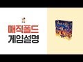 Magic Fold is a new version of Fold-it with a racing theme designed by Bruno Cathala. The game presents a new and fantastic combination of racing and folding system. Pick and choose between four magical formula cards and fold the magic carpet quickly before the other players. Players take tokens in the order they finish. Using a combination of the tokens and magical formula cards, you can fly through the desert or interfere with others from reaching the goal first. The player who reaches the palace first wins! Korean : 마법 주문 카드중 하나를 골라서 똑같이 접습니다. 그런데, 누군가가 먼저 그 마법 주문 카드를 완성한다면 다른 마법 주문 카드에 도전해야 합니다. |